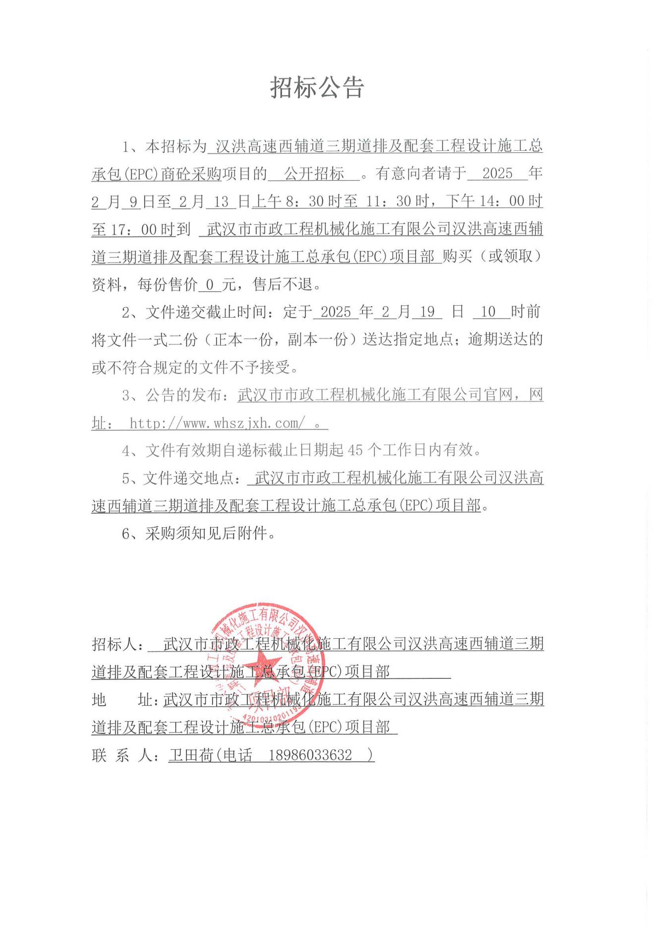 漢洪高速西輔道三期道排及配套工程設計施工總承包(EPC)商砼采購招標公告