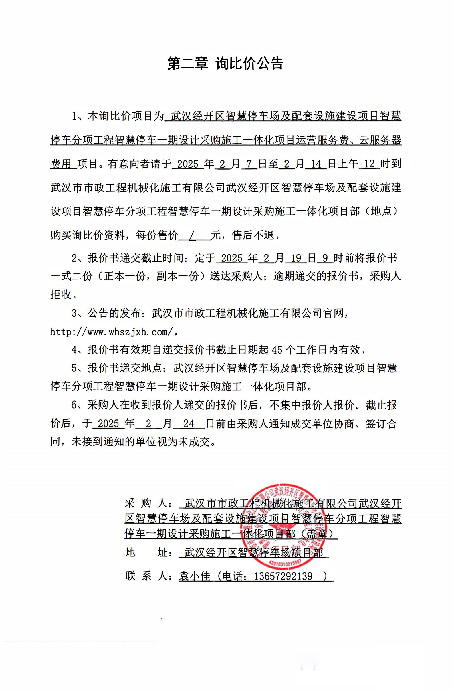 武漢經(jīng)開區(qū)智慧停車場(chǎng)及配套設(shè)施建設(shè)項(xiàng)目智慧停車分項(xiàng)工程智慧停車一期設(shè)計(jì)采購(gòu)施工一體化項(xiàng)目運(yùn)營(yíng)服務(wù)費(fèi)、云服務(wù)器費(fèi)用詢價(jià)公告