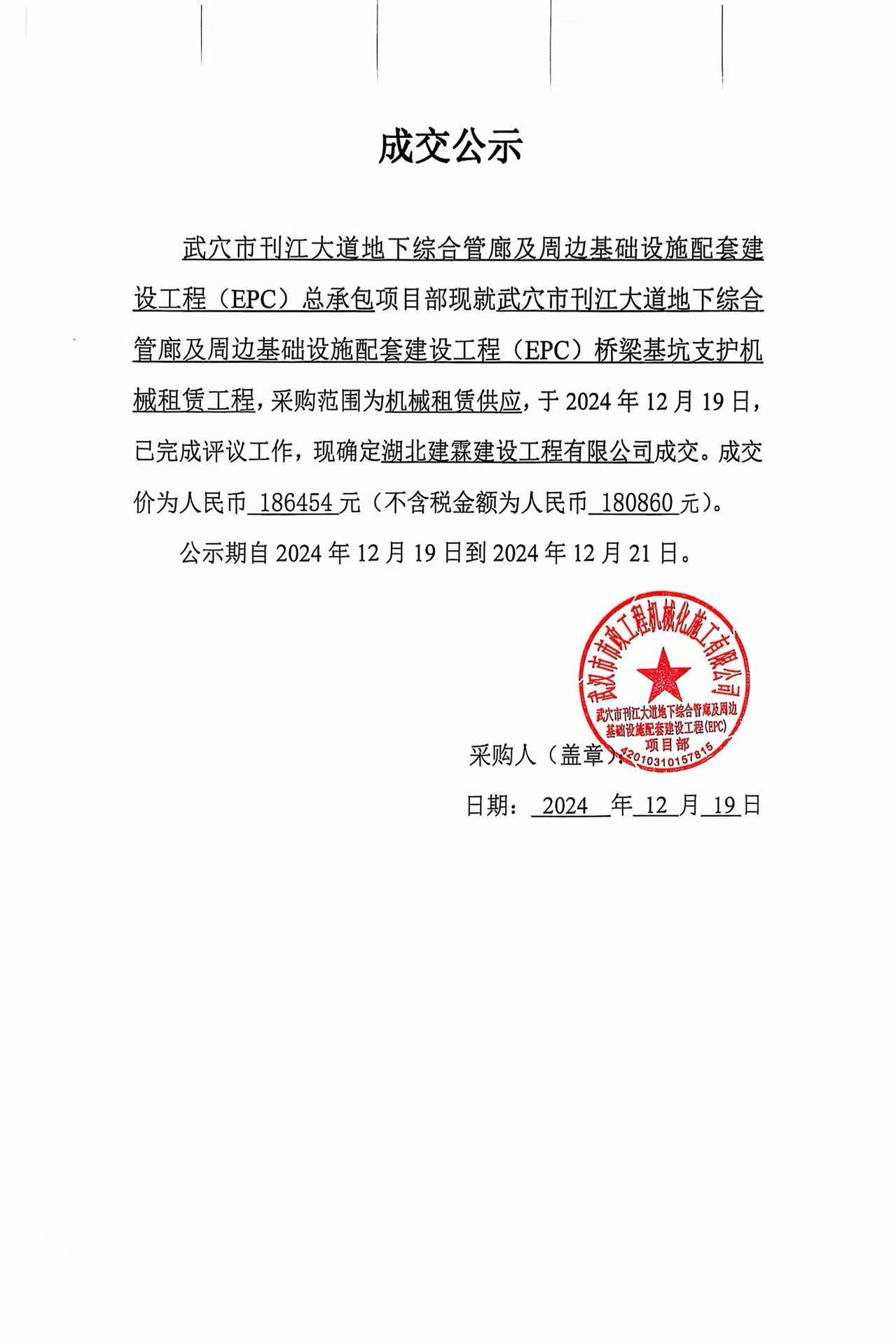 武穴市刊江大道地下綜合管廊及周邊基礎(chǔ)設施配套建設工程(EPC)橋梁基坑支護機械租賃工程成交公示