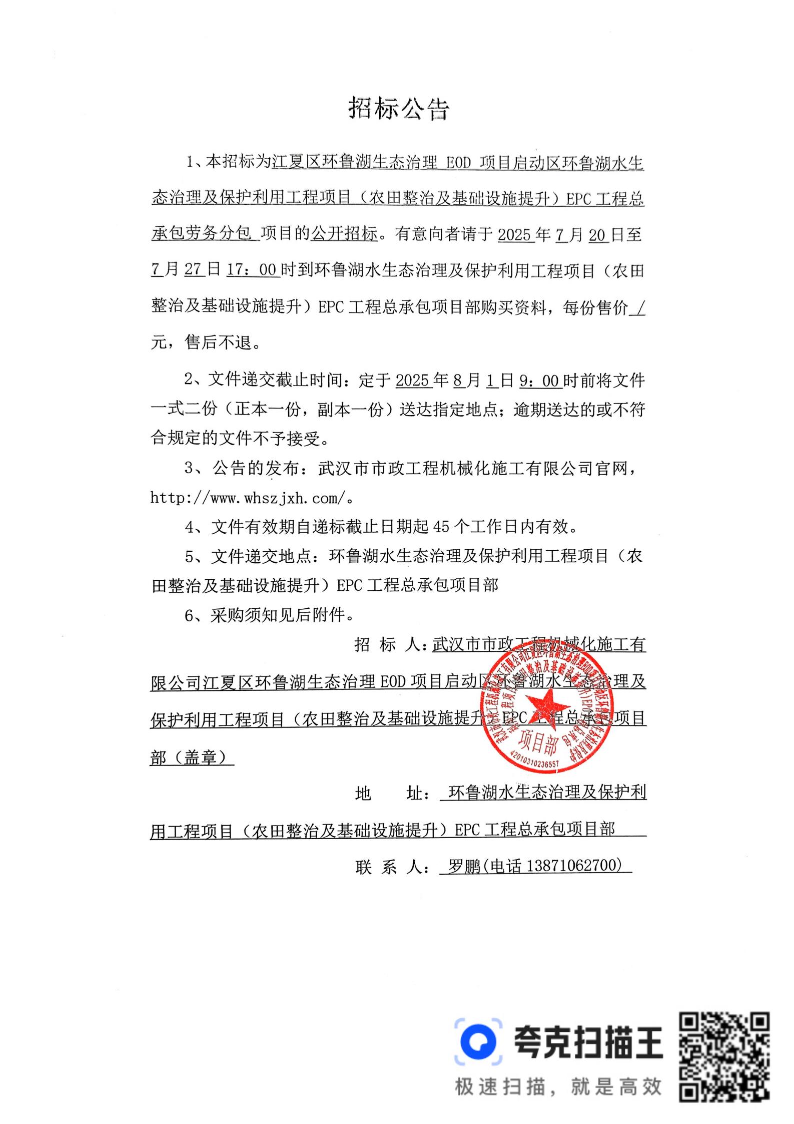 江夏區(qū)環(huán)魯湖生態(tài)治理 E0D 項(xiàng)目啟動區(qū)環(huán)魯湖水生態(tài)治理及保護(hù)利用工程項(xiàng)目(農(nóng)田整治及基礎(chǔ)設(shè)施提升)EPC工程總承包勞務(wù)分包招標(biāo)公告