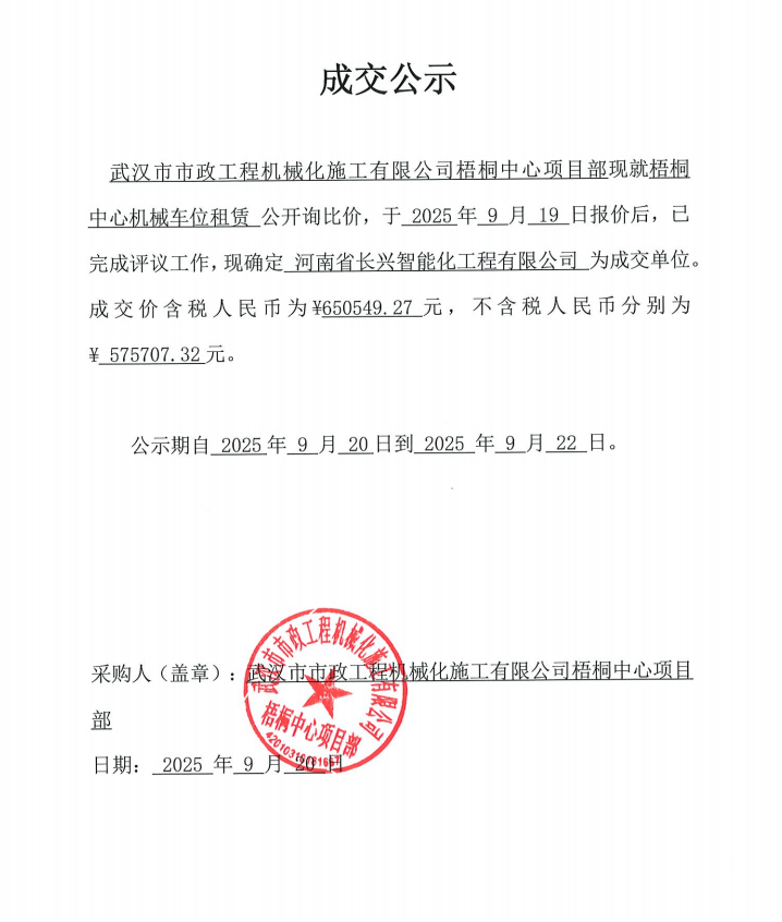 梧桐中心機(jī)械車位租賃成交公示