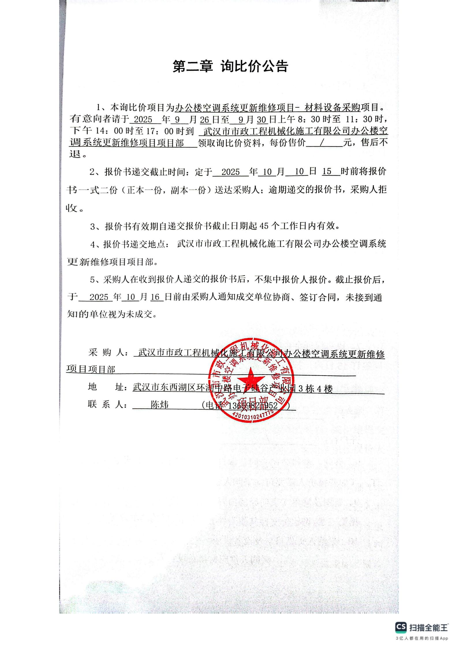 辦公樓空調(diào)系統(tǒng)更新維修項(xiàng)目-材料設(shè)備采購詢價公告