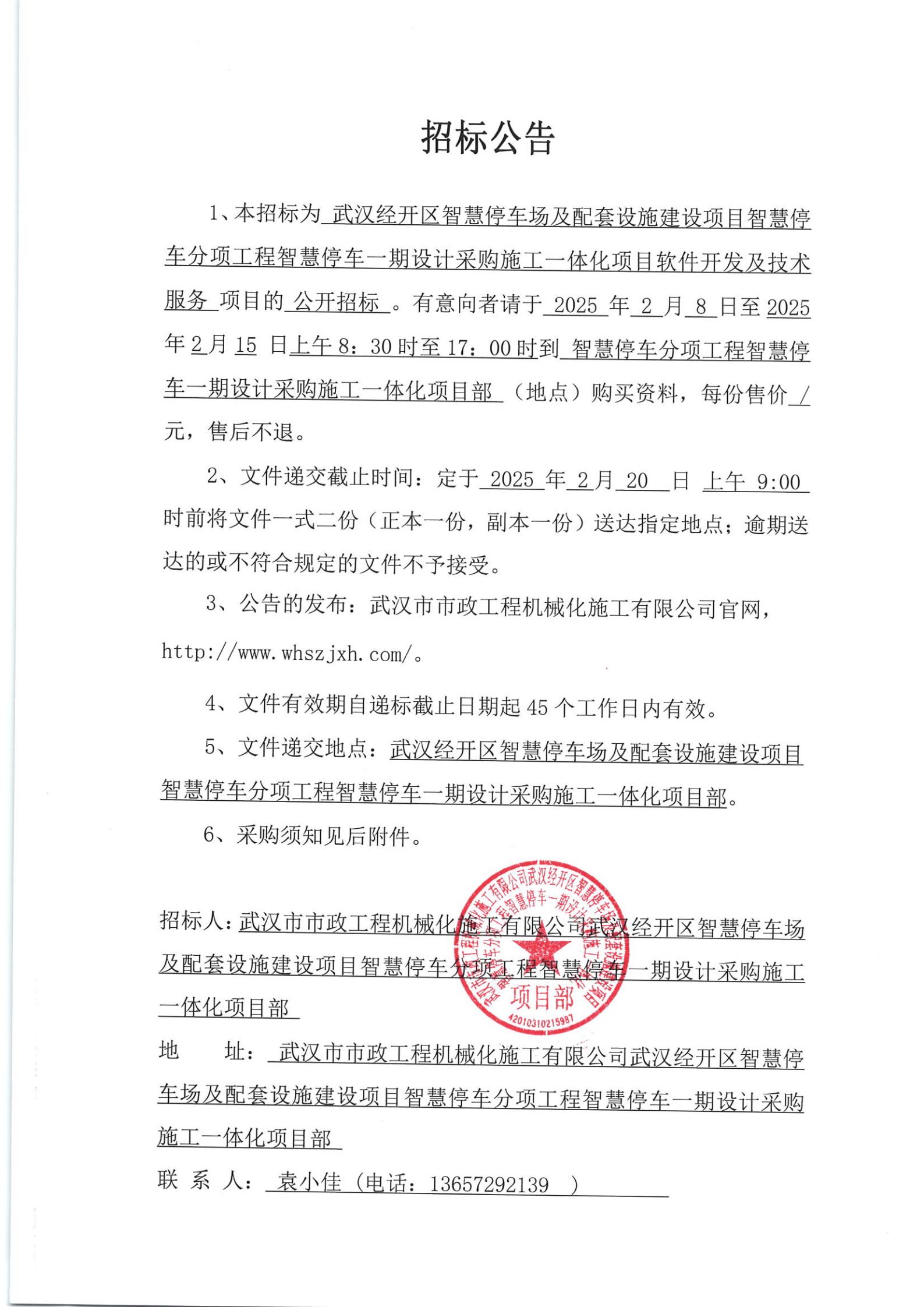 武漢經(jīng)開區(qū)智慧停車場及配套設施建設項目智慧停車分項工程智慧停車一期設計采購施工一體化項目工程軟件開發(fā)及技術服務招標公告