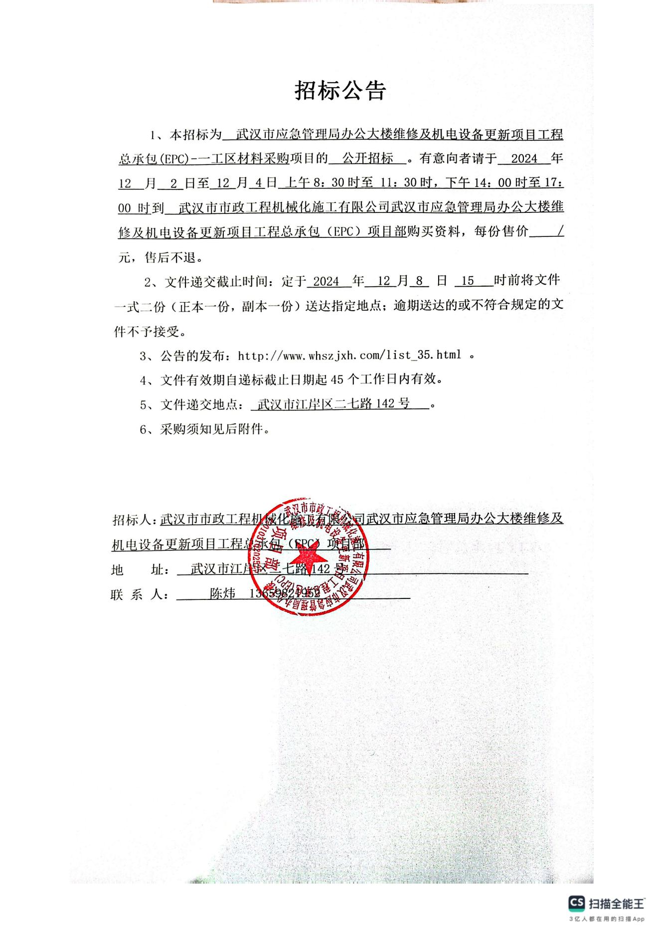 武漢市應(yīng)急管理局辦公大樓維修及機電設(shè)備更新項目工程總承包(EPC)-一工區(qū)材料采購招標(biāo)公告