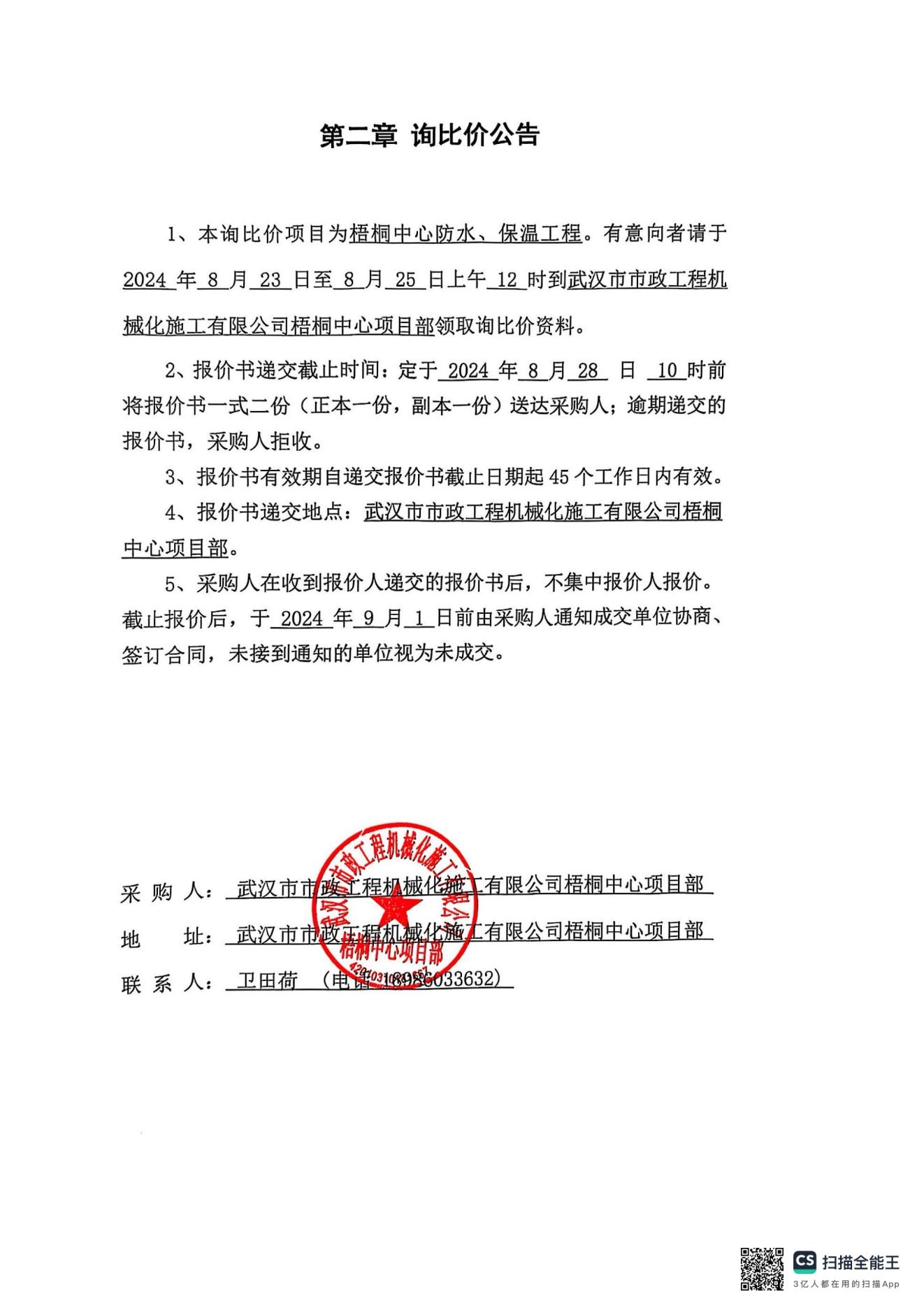 梧桐中心防水、保溫工程詢價公告